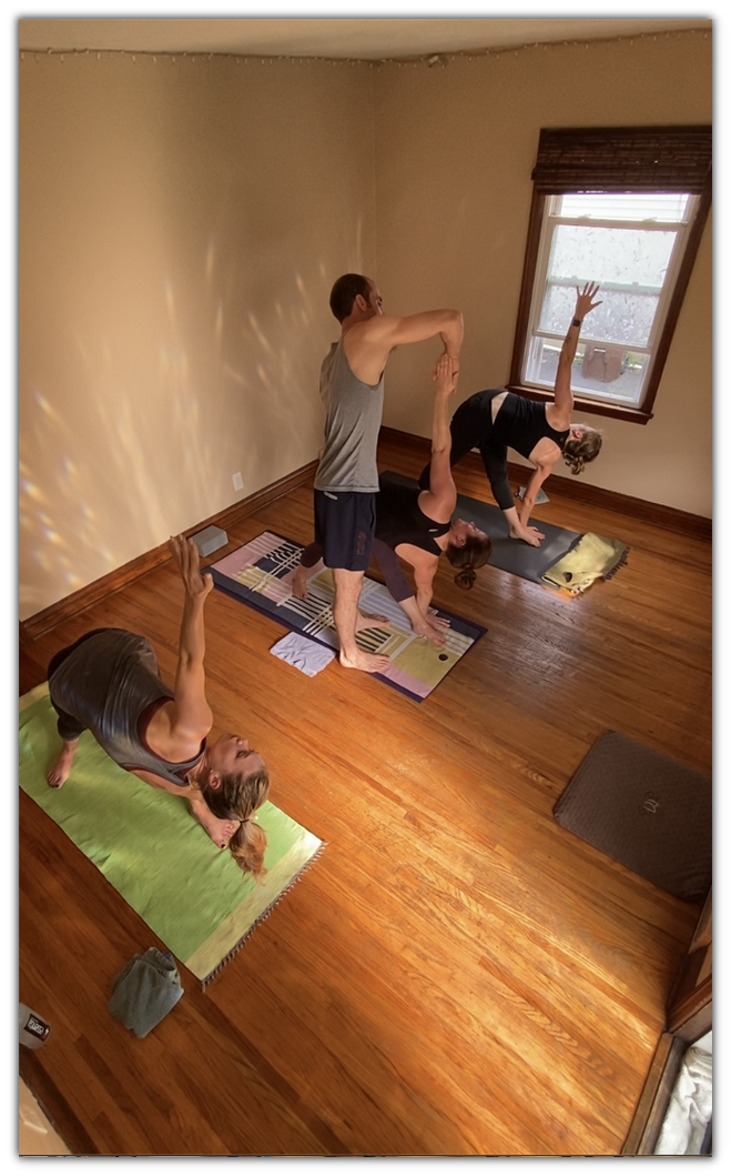 In support of building community, Aaron and Ruth Ann open their residence in Chapel Hill to accommodate private lessons and small group classes for those interested in learning more about yoga and the Yogastha Sadhana practice. Aaron and Ruth Ann have intentionally set their space up to accommodate multiple mats and yogis coming together for practice, so please do not hesitate to inquire. In most cases, it is respectful to have met before an invitation to the home address is extended. Aaron is happy to meet in person or schedule a video call to say hello and answer questions. With so many wonderful and exciting opportunities to connect, please feel free to reach out about current class offerings or private lessons, as well as coordinating workshops and retreats, or with any general questions you may have.
